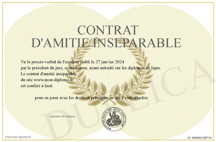 Envoyez par email votre contrat d'amitié inséparable personalisé