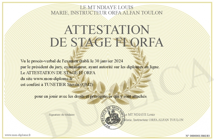 Envoyez par email votre ATTESTATION DE STAGE FI ORFA personalisé