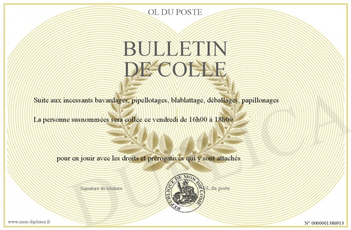 Envoyez par email votre BULLETIN DE COLLE personalisé