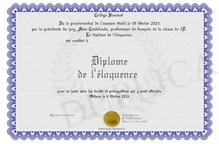 Envoyez par email votre Diplôme de l'éloquence personalisé
