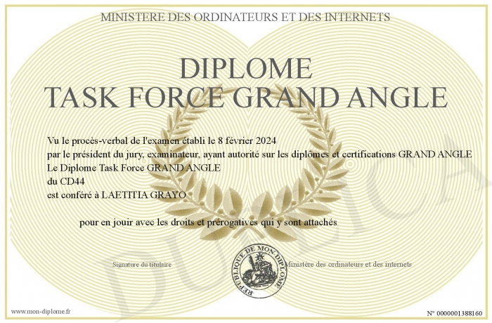 Envoyez par email votre Diplôme Task Force GRAND ANGLE personalisé