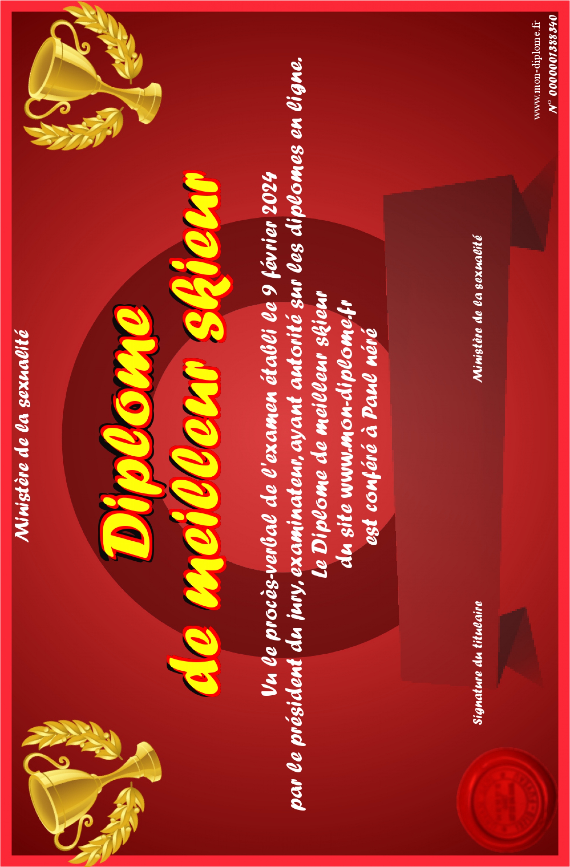 Envoyez par email votre Diplôme de meilleur skieur personalisé