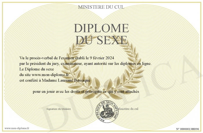 Envoyez par email votre Diplôme du sexe personalisé