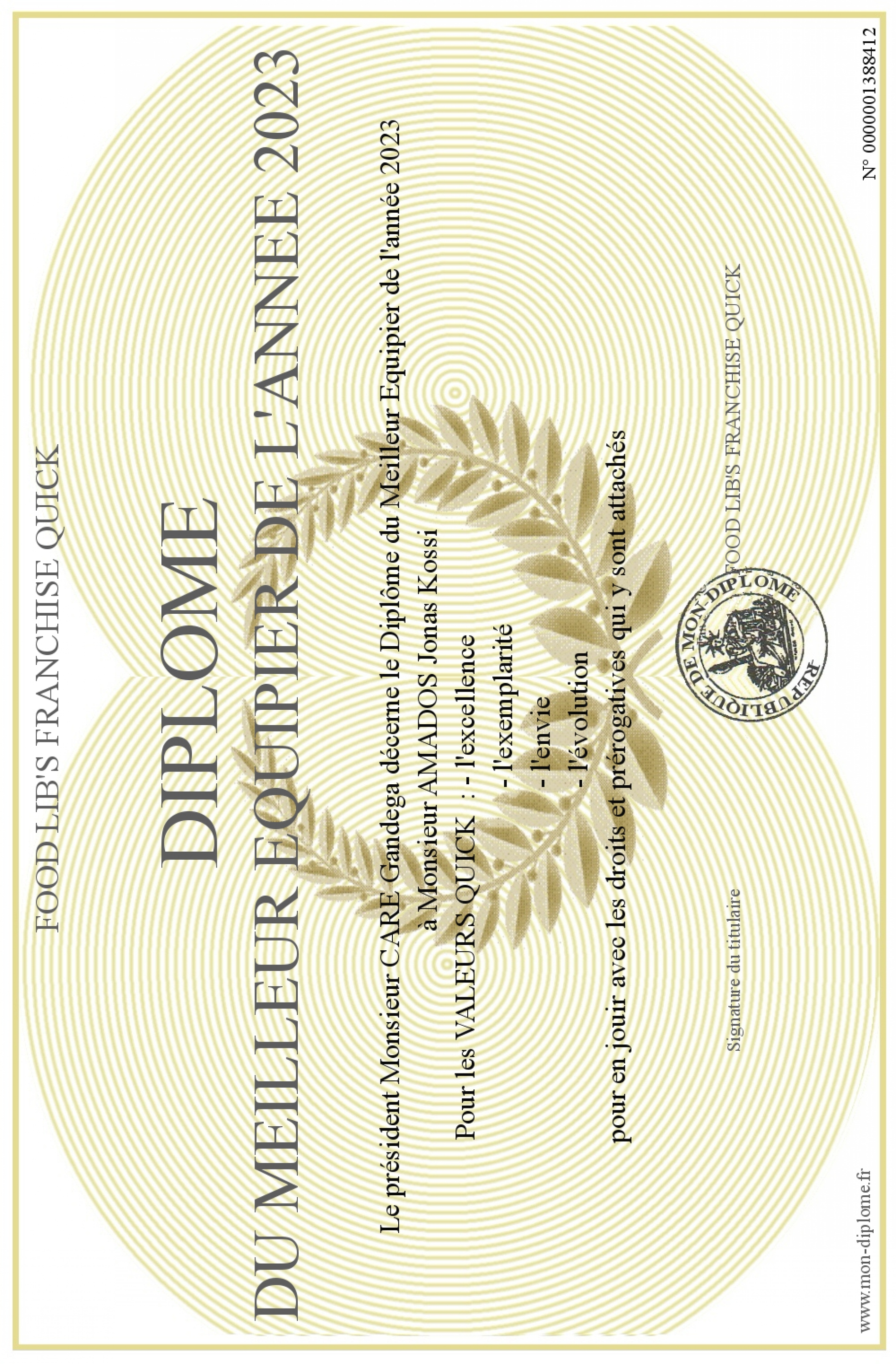 Envoyez par email votre DIPLOME DU MEILLEUR EQUIPIER DE L'ANNEE 2023 personalisé
