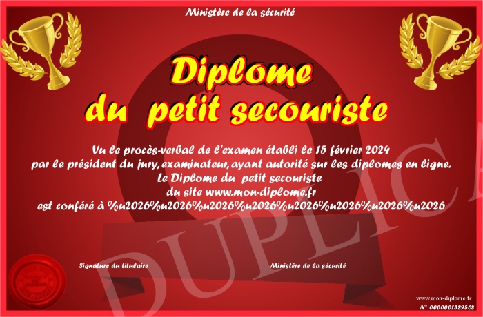 Envoyez par email votre Diplôme du petit secouriste personalisé