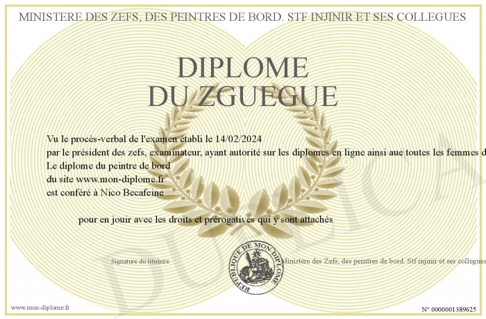 Envoyez par email votre Diplôme du ZGUEGUE personalisé
