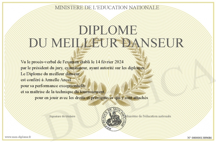 Envoyez par email votre Diplôme du meilleur danseur personalisé
