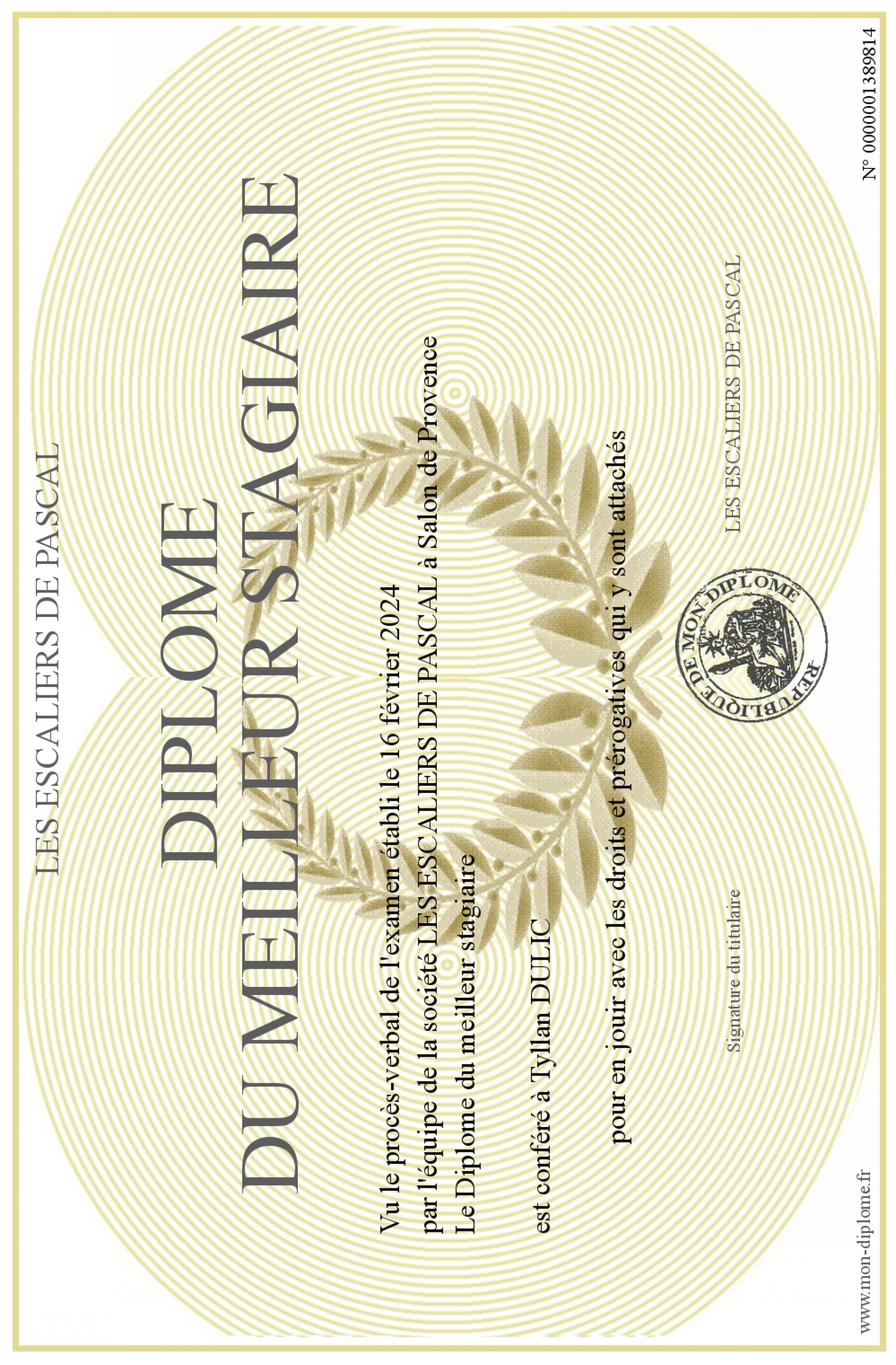 Envoyez par email votre Diplôme du meilleur stagiaire personalisé