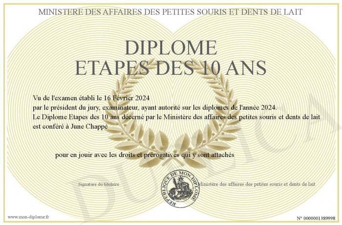 Envoyez par email votre Diplôme Etapes des 10 ans personalisé