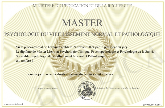 Envoyez par email votre Master psychologie du vieillissement normal et pathologique personalisé