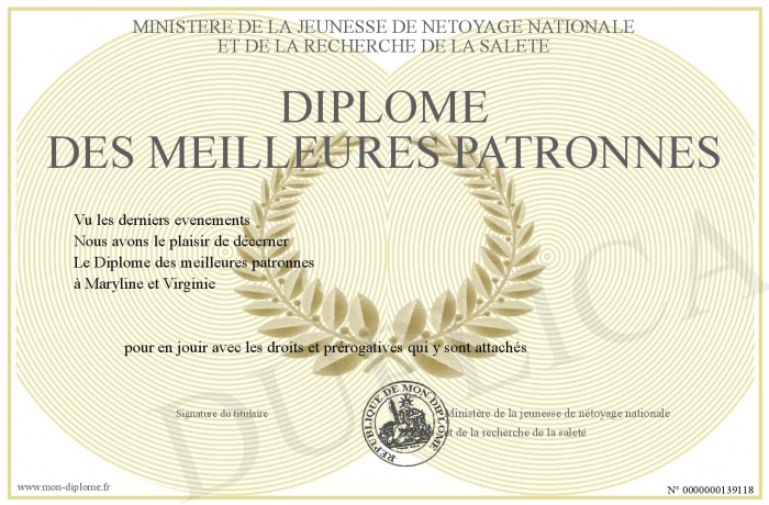 Envoyez par email votre Diplôme des meilleures patronnes personalisé