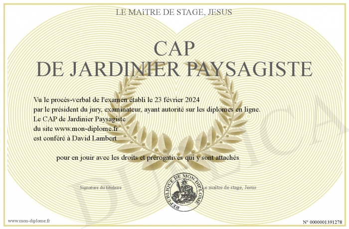Envoyez par email votre CAP de Jardinier Paysagiste personalisé