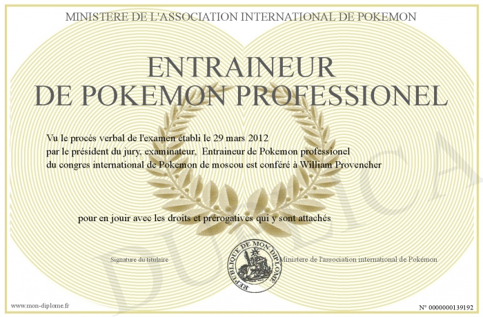 Envoyez par email votre Entraineur de Pokemon professionel personalisé