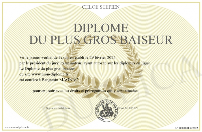 Envoyez par email votre Diplôme du plus gros baiseur personalisé