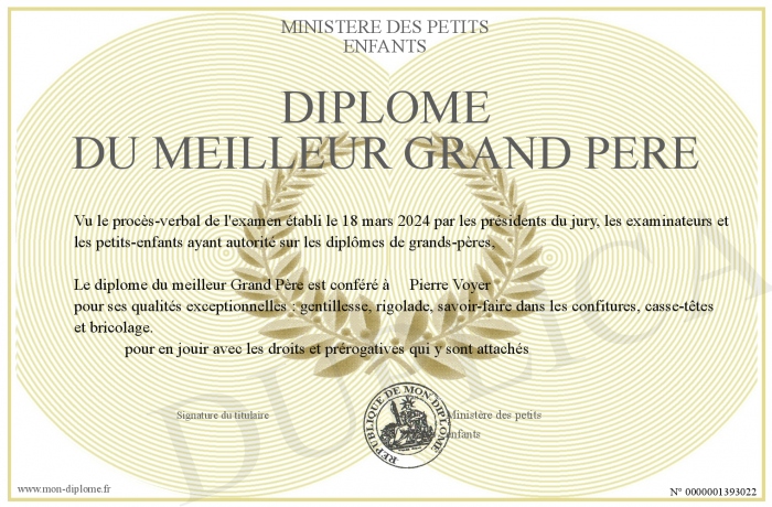 Envoyez par email votre diplôme du meilleur Grand Père personalisé