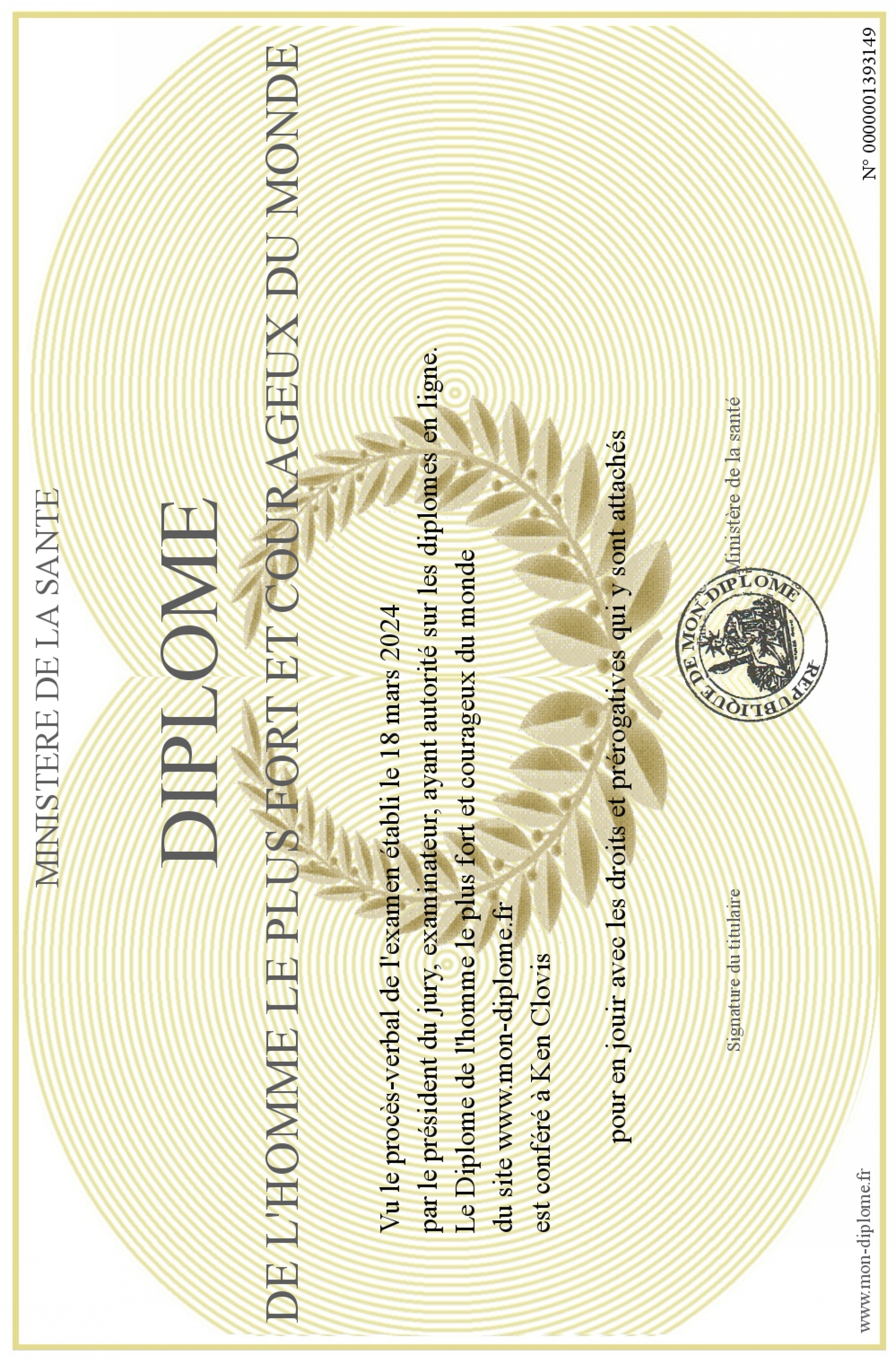 Envoyez par email votre Diplôme de l'homme le plus fort et courageux du monde personalisé