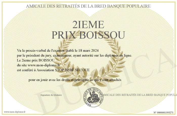 Envoyez par email votre 2ieme prix BOISSOU personalisé