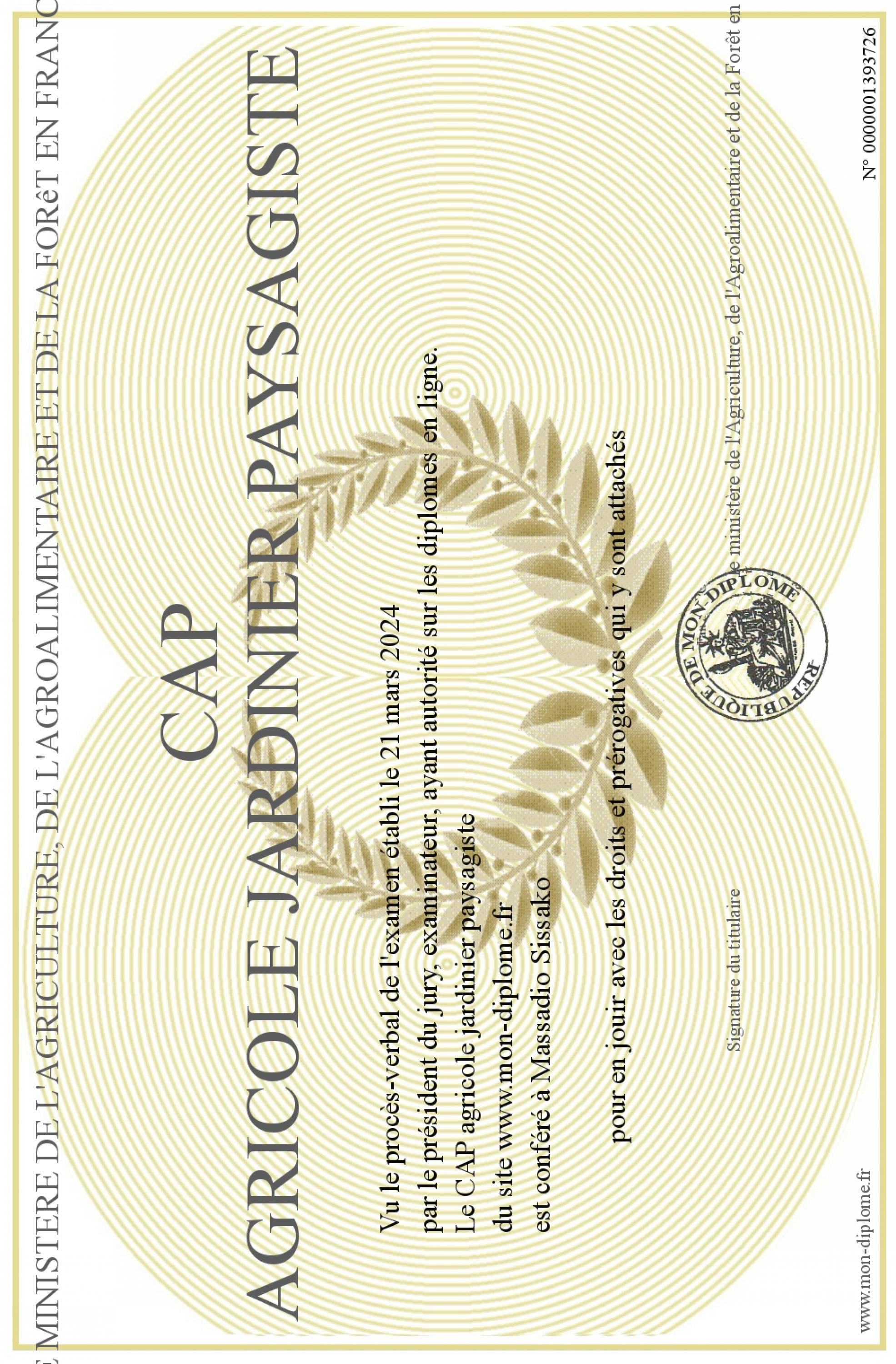 Envoyez par email votre CAP agricole jardinier paysagiste personalisé