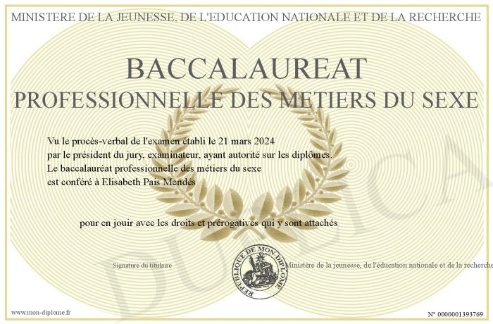 Envoyez par email votre baccalauréat professionnelle des métiers du sexe personalisé