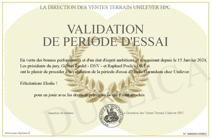 Envoyez par email votre Validation de Période d'Essai personalisé
