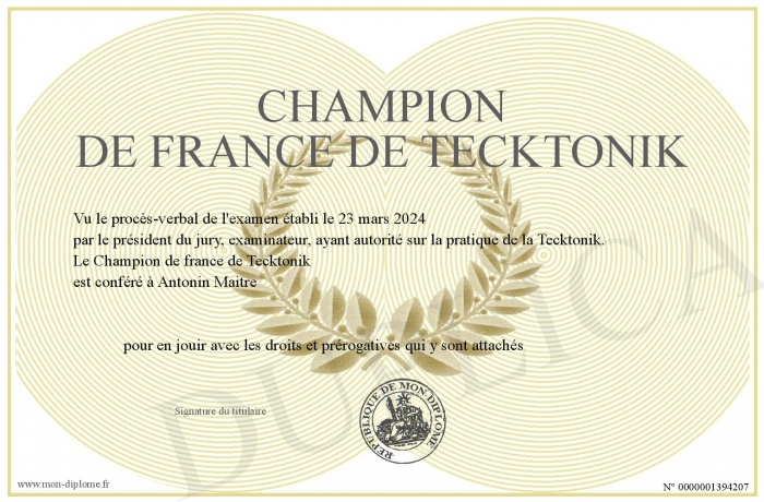 Envoyez par email votre Champion de france de Tecktonik personalisé