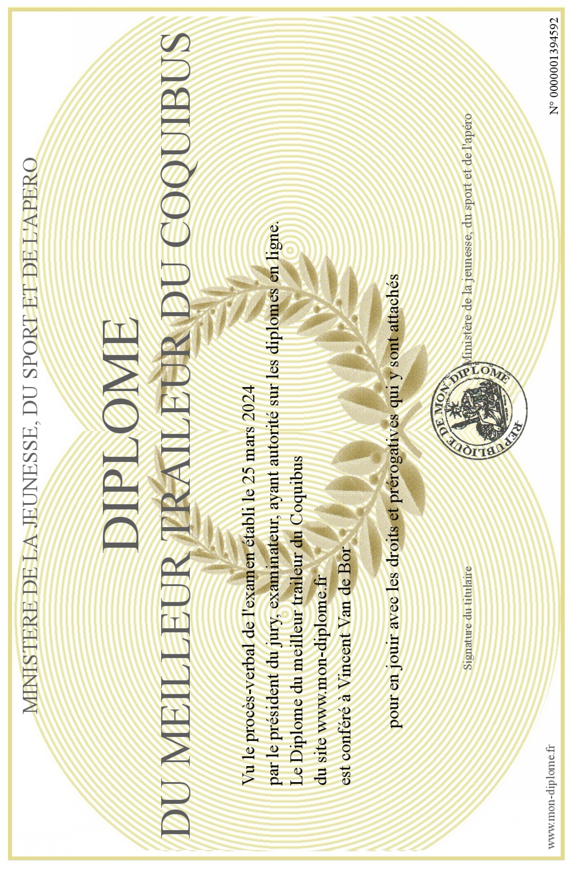 Envoyez par email votre Diplôme du meilleur traileur du Coquibus personalisé