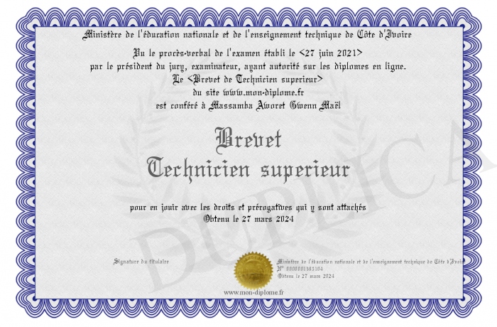 Envoyez par email votre Brevet Technicien superieur personalisé