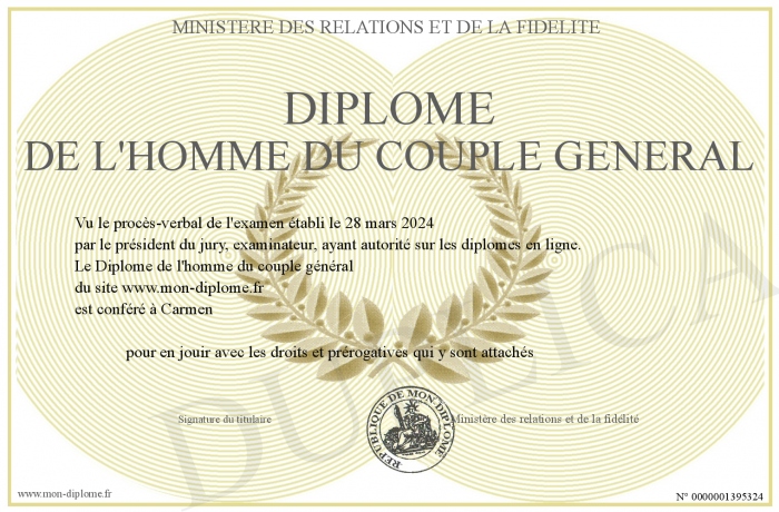 Envoyez par email votre Diplôme de l'homme du couple général personalisé