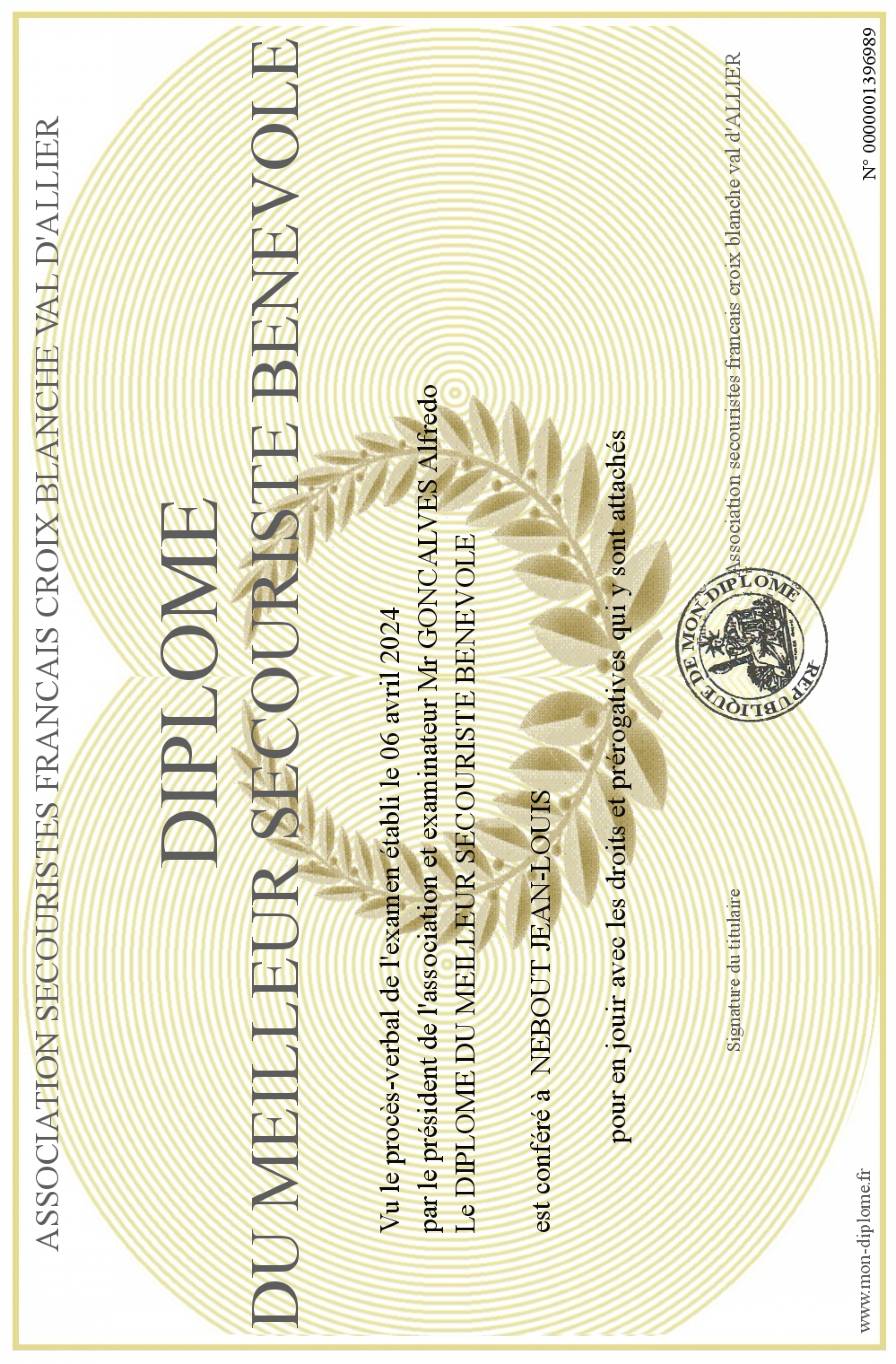 Envoyez par email votre Diplôme du meilleur secouriste bénévole personalisé