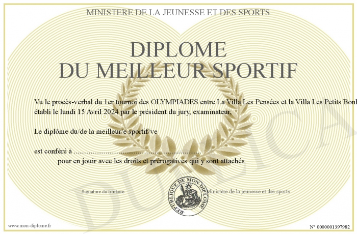 Envoyez par email votre Diplôme du meilleur sportif personalisé