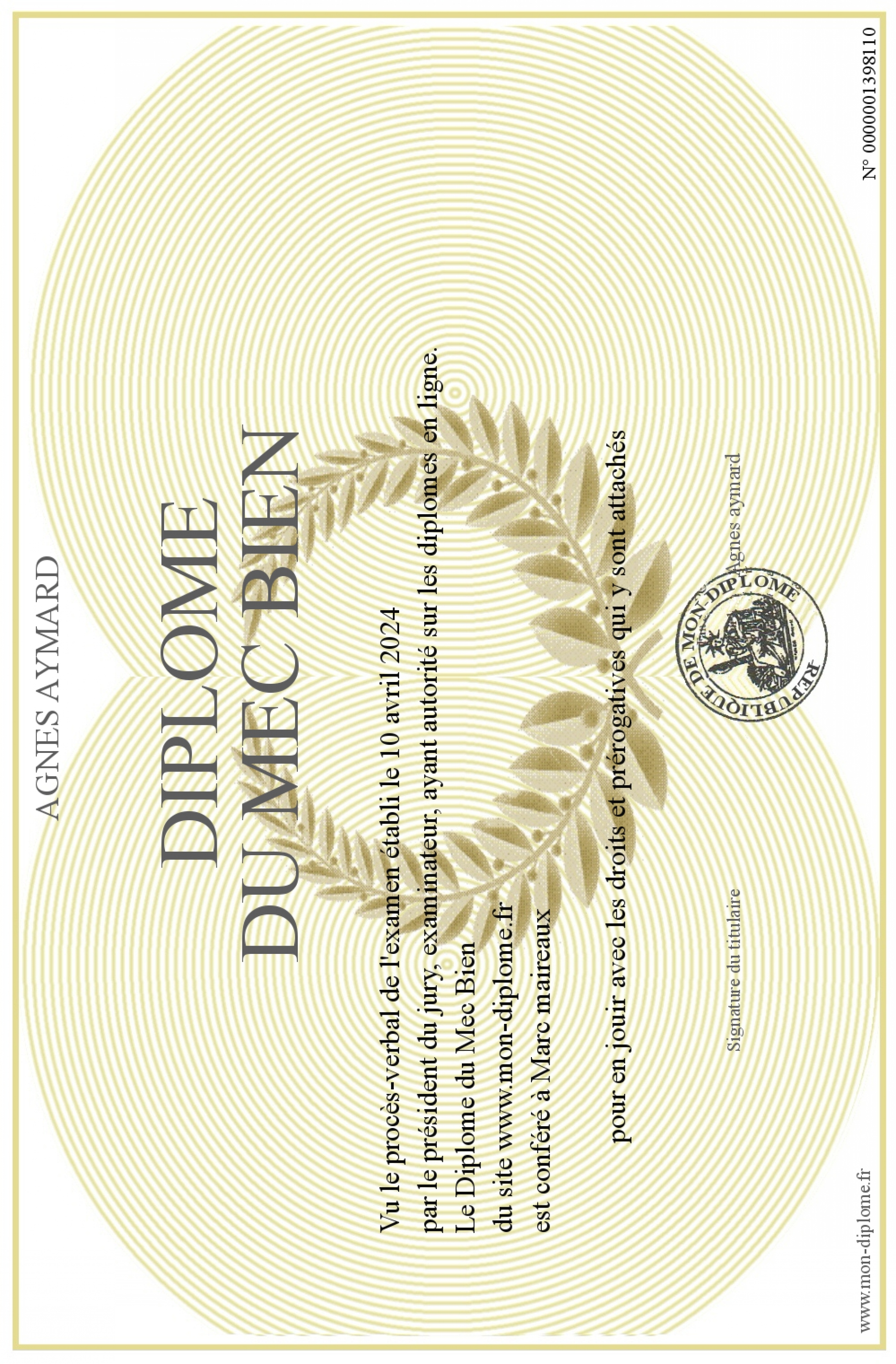 Envoyez par email votre Diplôme du Mec Bien personalisé