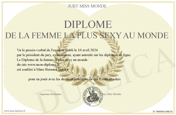 Envoyez par email votre Diplôme de la femme la plus sexy au monde personalisé