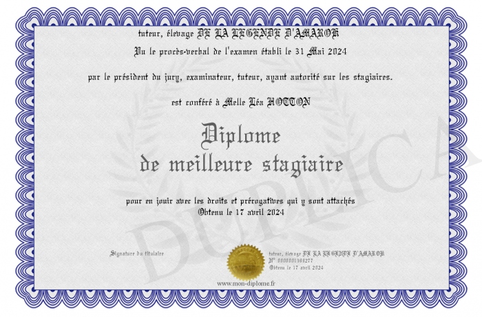 envoyé par le tuteur, élevage DE LA LEGENDE D'AMAROK !