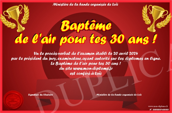Envoyez par email votre Baptême de l'air pour tes 30 ans ! personalisé