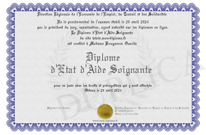 Envoyez par email votre Diplôme d'Etat d'Aide Soignante personalisé