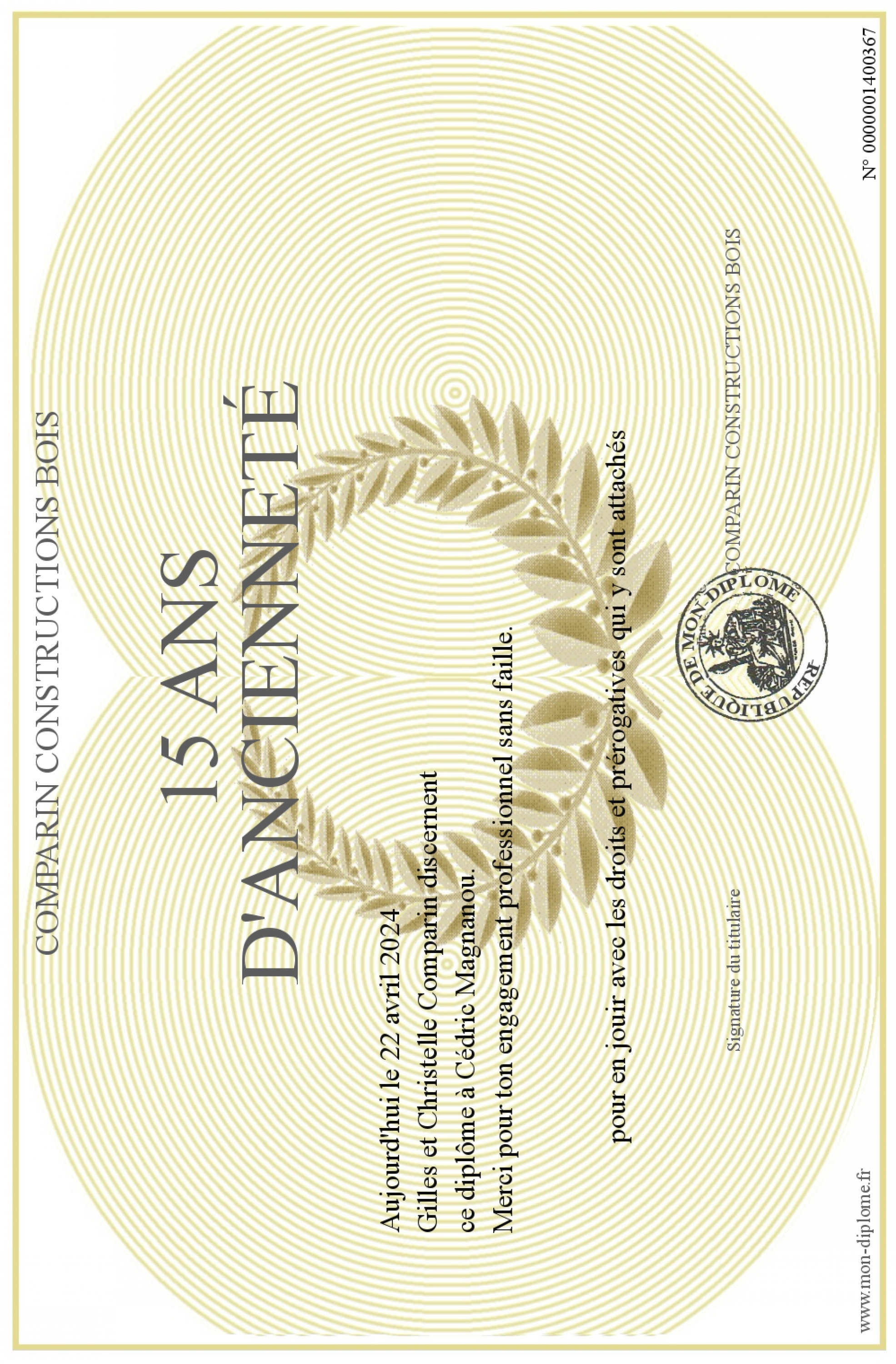 Envoyez par email votre 15 ANS D'ANCIENNETÉ personalisé