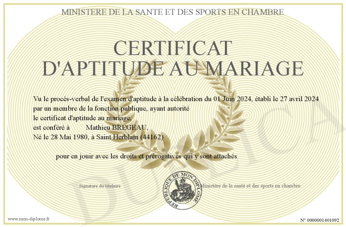 Envoyez par email votre certificat d'aptitude au mariage personalisé