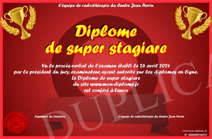 Envoyez par email votre Diplôme de super stagiare personalisé