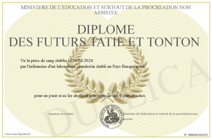 envoyé par le Ministère de l'éducation et surtout de la procréation non-assistée !