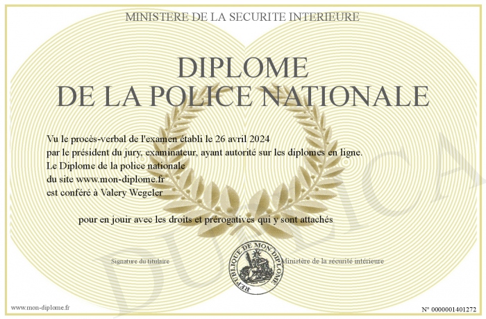 Envoyez par email votre Diplôme de la police nationale personalisé