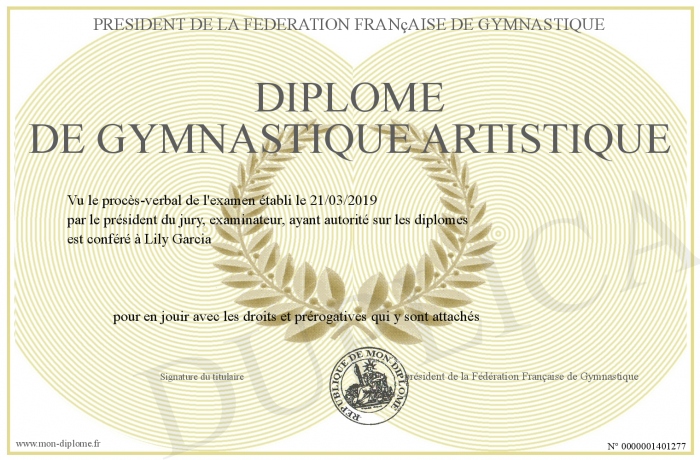 Envoyez par email votre Diplôme de Gymnastique artistique personalisé