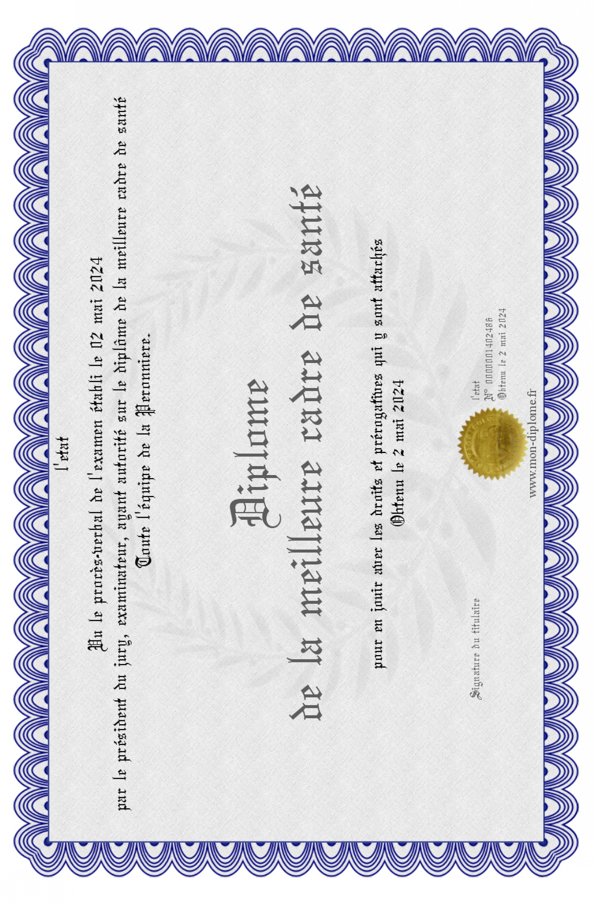 Envoyez par email votre Diplôme de la meilleure cadre de santé personalisé