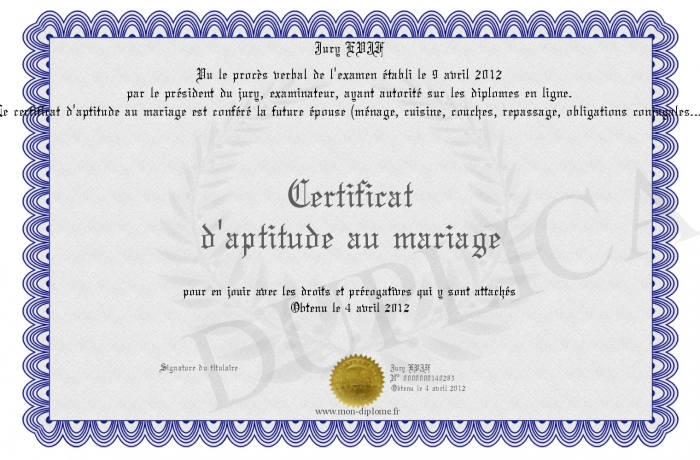 Envoyez par email votre Certificat d'aptitude au mariage personalisé