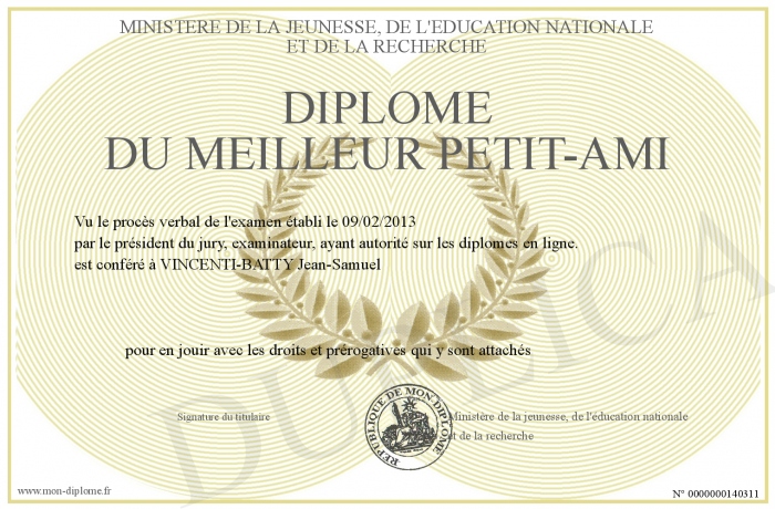 Envoyez par email votre diplôme du meilleur petit-ami personalisé