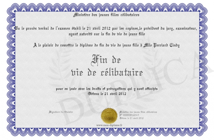 Envoyez par email votre Fin de vie de célibataire personalisé