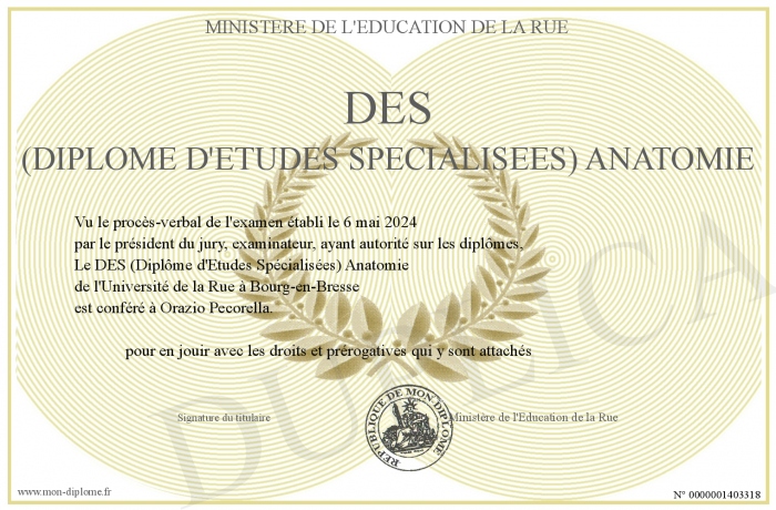 Envoyez par email votre DES (Diplôme d'Etudes Spécialisées) Anatomie personalisé