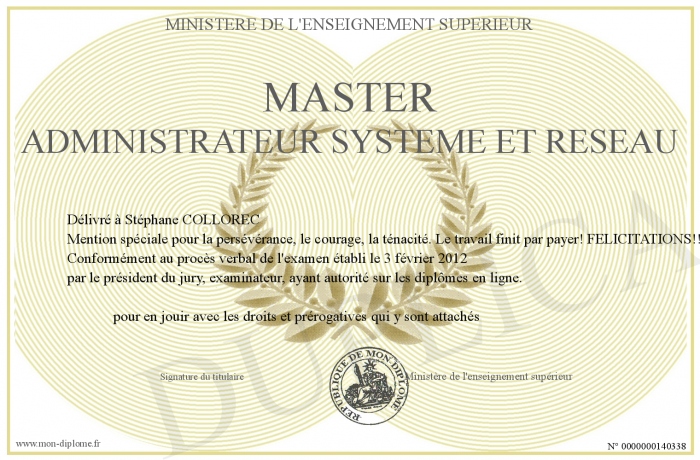 Envoyez par email votre MASTER Administrateur Système et Réseau personalisé
