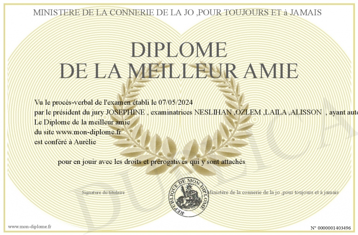 Envoyez par email votre Diplôme de la meilleur amie personalisé