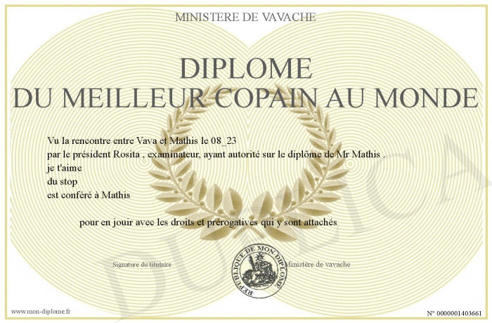Envoyez par email votre diplome du meilleur copain au monde personalisé