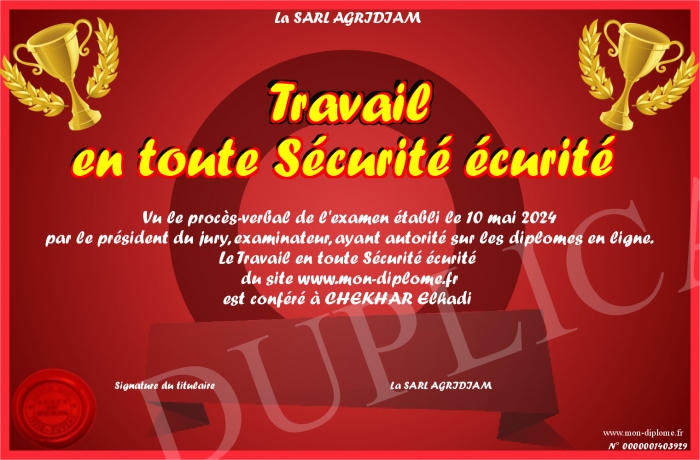 Envoyez par email votre Travail en toute Sécurité écurité personalisé